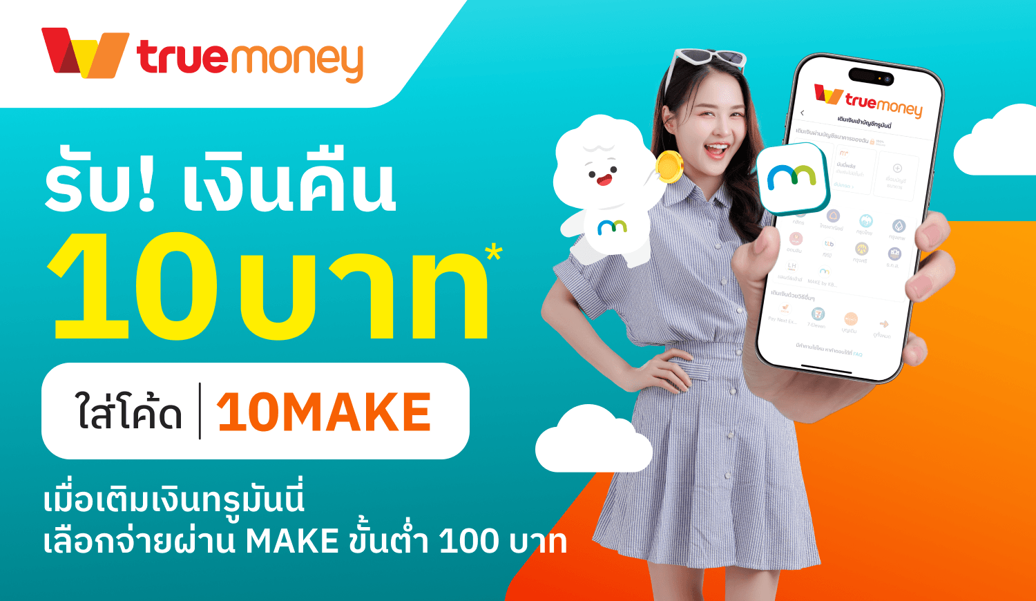 พิเศษสำหรับลูกค้าใหม่! เพียงเติมเงินผ่าน MAKE รับเงินคืน 10 บาทเพียงเติมเงิน AIS TRUE หรือ DTAC ครั้งแรก ขั้นต่ำ 300 บาท พร้อมกรอกรหัสโปรโมชัน TELCO1014 ก.ค. 68 - 31 ส.ค. 68